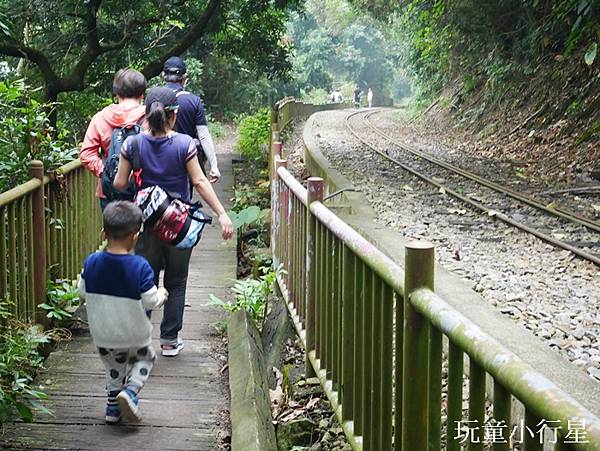 這趟主題列車和我兒差不多年紀的還有另外兩個小朋友,看到他們三人在軌道上排列行走,把自己當火車發出前進聲,不禁讓人莞薾。