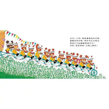 傑琪有11 位哥哥,牠們騎著協力腳踏車去旅行。我兒一看到這台超長的腳踏車不禁驚呼!「怎麼有這麼長的協力車啊?!」