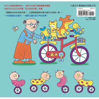 一看到書上封面鴨子一臉神氣的騎著腳踏車,兒子的目光馬上就被吸引了。這是一本畫面讓人一看就很難忘的故事。