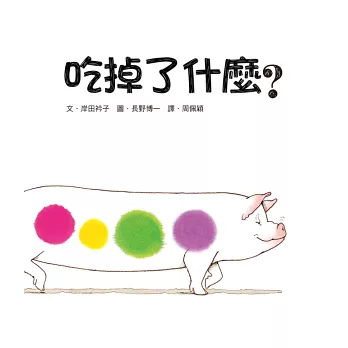 這本《吃掉了什麼?》畫面乾淨,很明確的就可以看到小白豬吃了什麼水果,水果是什麼顏色、其它豬的花色。