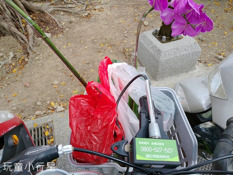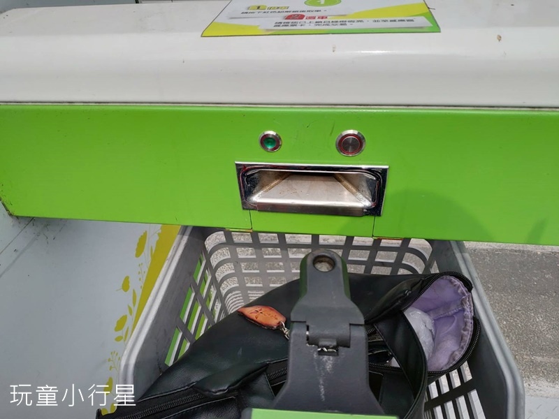 原來只要把籃子裡的鎖繩先拉出來繞過車輪一圖,再插上龍頭前方,綠色貼紙側邊的孔,就可以將右側鑰匙取出。