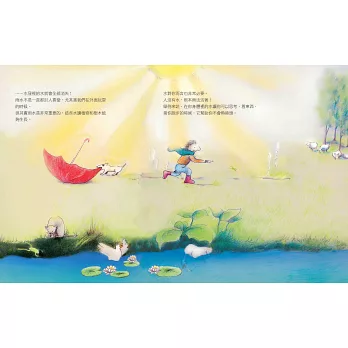 我們一邊閱讀一邊跟著小水滴去旅行,共讀完後我跟兒子說,我好希望小水滴們快點從天空落下傾盆大雨,滋潤大地、沖洗窗台上的鳥大便啊!