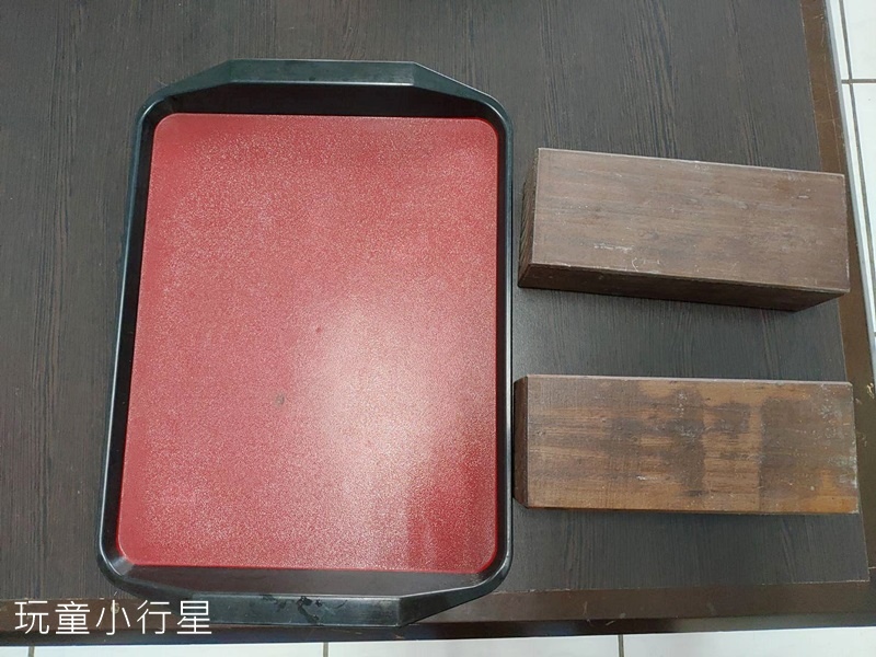 只要準備個較大的托盤或壓克力板,再加上木頭磚頭這類的物品將之墊高就可以將單格變成雙格。