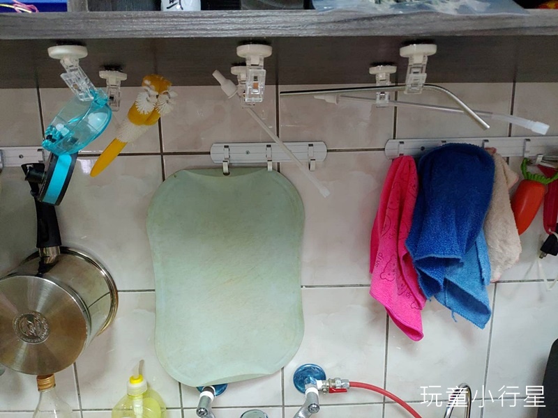 這些掛勾在收納上幫了不少忙,廚具收納、吊掛衣服、袋子、裝飾品…。