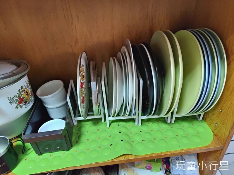 這種附矽膠條的碗盤收納架可以拿來瀝乾碗盤,放置碟盤,拿取方便又美觀。