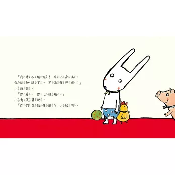 小兔子和朋友們比高,小雞、小豬、鴨子、小羊都很不服氣。