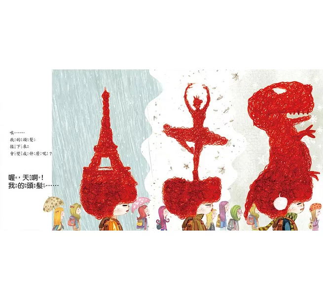 多莉的紅髮硬到梳子一梳就斷,還會任意變幻形狀,變恐龍、塔、星球…