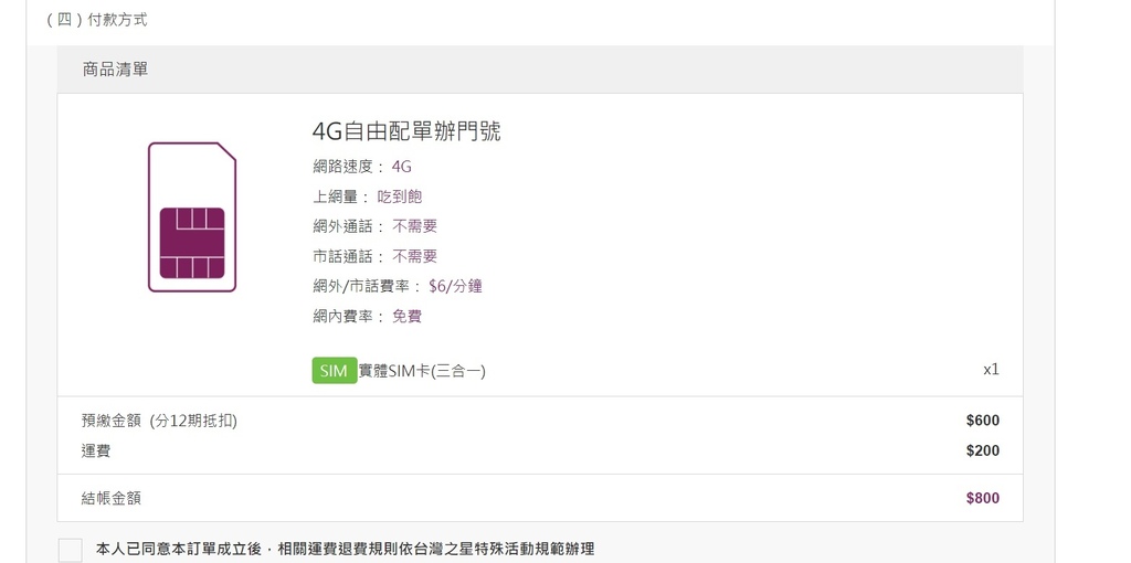 首先我們先在台灣之星的網路門市申辦(只能在網路上申辦)。
