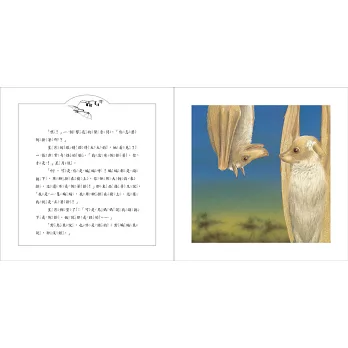 大小讀者可以共讀此書知道蝙蝠與鳥類生活形態的不同,吃的食物不同、睡眠習慣不同、飛行及站立的姿態不同…