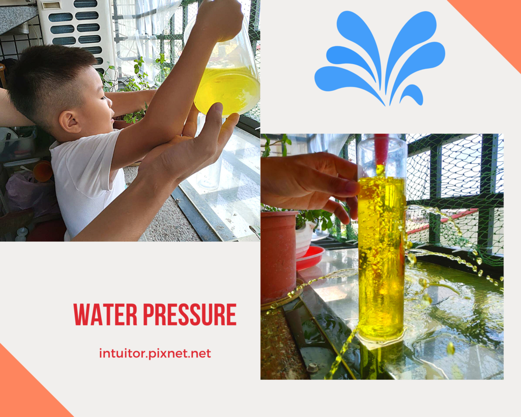 平時我們用水管噴水,水壓越大,水噴出的射程就越遠。這個常見用瓶子來做水壓的實驗實際看起來也是照著這個邏輯去走。