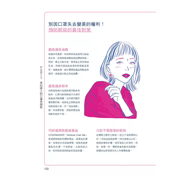 肌膚美容專家、日本肌膚保養協會認證講師、化妝品藥事法管理者,川上愛子提出了14種口罩底下的美顏術。