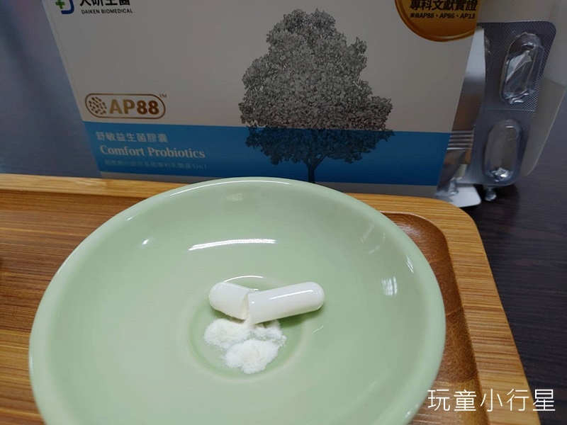 我決定沾粉末舔舔看味道,還好不苦,也沒有特別的甜,味道很中性。如果小朋友不會吞膠囊把它咬破來吃也行得通。