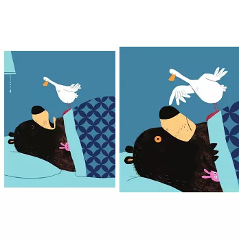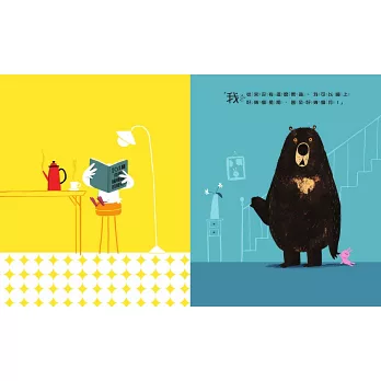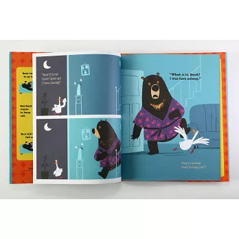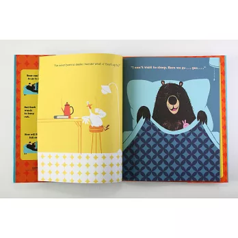 一隻清醒的鴨子,想找大熊玩撲克牌、做餅乾、講乾事…,套句我兒子說:這隻鴨子毛病真多耶!