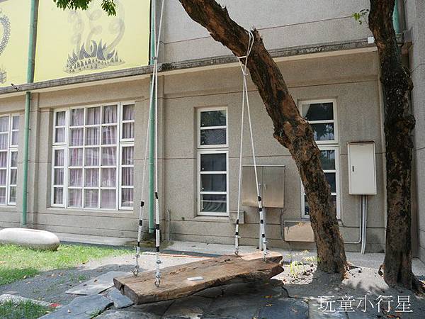 在演武場和美術館之間的戶外區有設置幾個裝置藝術,看到這座鞦韆我原本還以為可以乘坐,在座椅上方有貼上“不能乘座“的警語,可千萬別坐上去啊。