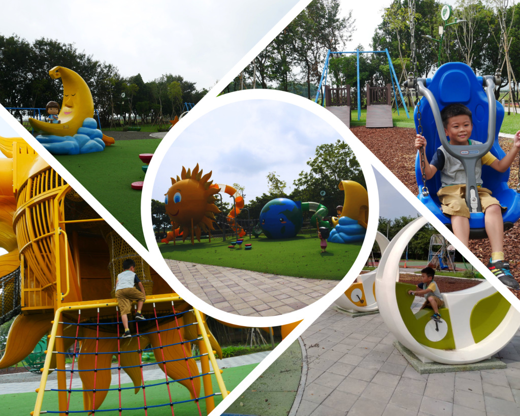 ▶︎遊戲丘、磨石滑梯、平衡設施、鞦千、風雨球場