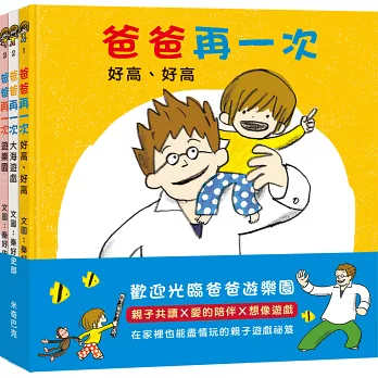 秦好史郎推出的爸爸育兒遊戲三書:《爸爸再一次 :好高、好高》、《爸爸再一次2:大海遊戲》、《爸爸再一次3:遊樂園》