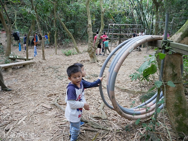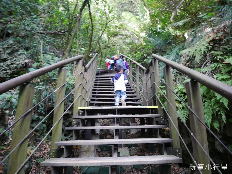 這一段攀岩路較第一段高,高度大約1層樓,雖然坡度緩,有些間距大,仍需協助幼兒爬上去。