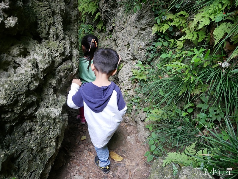行經夾縫,我背著大背包還鑽得過去,小朋友身形嬌小自然是走得過。