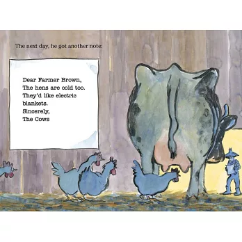 Farmer Brown看到這張單子馬上就回絕了牛隻們的請求。