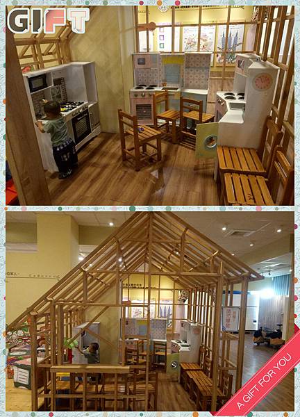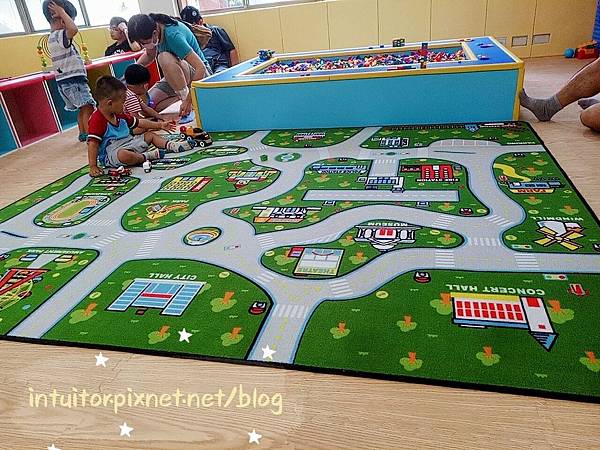▶︎遊戲空間2間教室大小,有車車、廚具、積木…