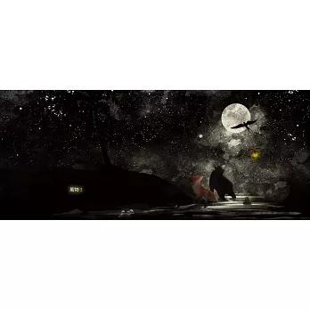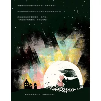 黑夜中,璀璨夜空的美景呈現眼前。 《Mole in a Black & White Hole》 Mole探出地表,看到滿天星斗,月亮光芒照耀萬物,彩色煥發。 黑與白,不是混沌灰暗。靜下心來觀察會發現這世界充滿色彩。 |