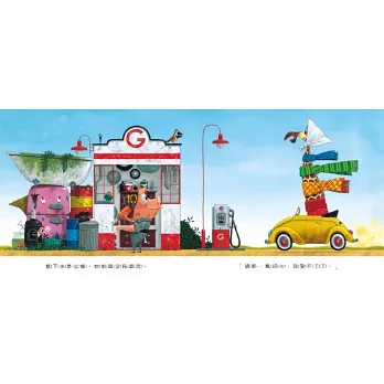 還有塞車畫面,對於很愛玩塞車遊戲的兒子來說,自然是愛不釋手。(塞車主題繪本延伸閱讀:《超級大塞車》)