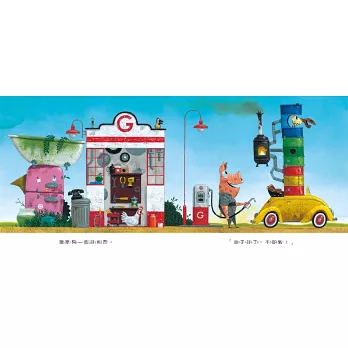 我和兒子共讀的是英文版本,畫面內有非常多元的車子,可以顛覆常理想像。