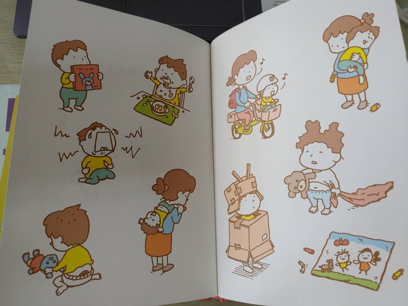 畫面中(見下圖)有小嬰兒學吃飯、小孩嚎咷大哭、媽媽騎腳踏車載小孩、小孩玩遊戲、小孩和媽媽抱抱…