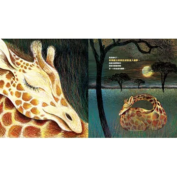在我看來這是本非常具有美感,藝術性很高的繪本,整體畫面構成充滿了黑夜的寂靜感,畫面中銀亮的明月皎潔耀眼。動物們沉睡的模樣充滿祥和氛圍。文字敘述帶點詩意。每一頁都值得停留細看。