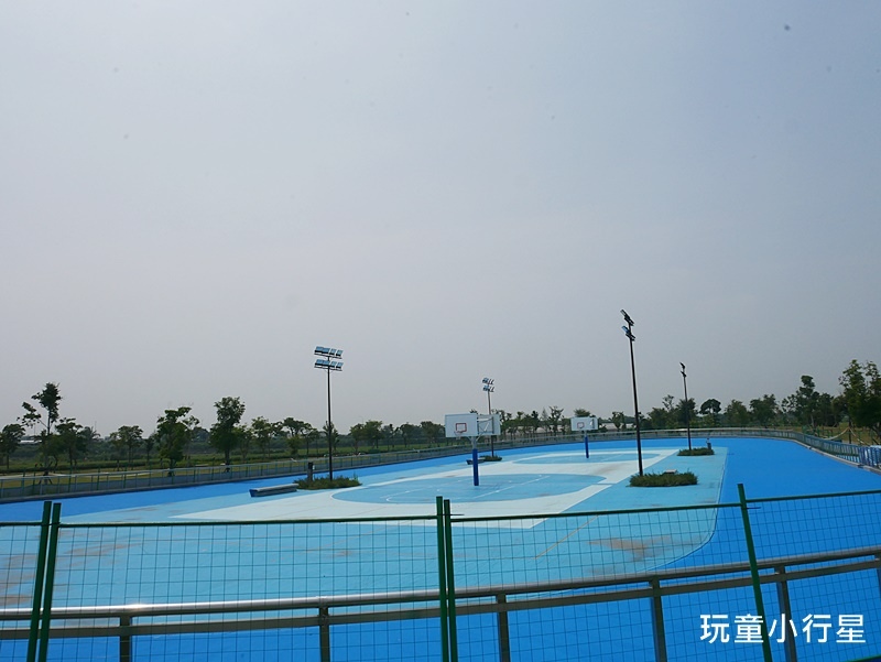 籃球場還沒完全開放,場內有照明燈。