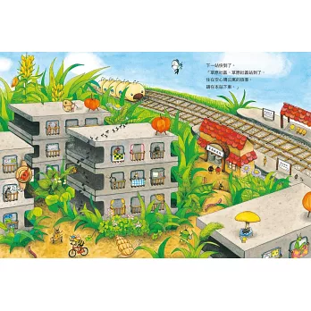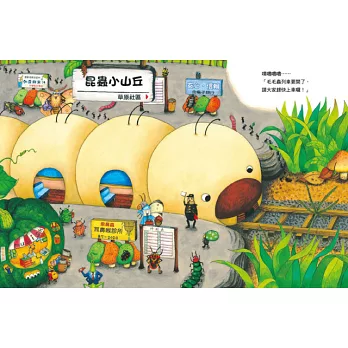 讀者搭上這台毛毛蟲列車,抵達昆蟲小山丘、草原社區、農園前、鼴鼠地下街、蘋果樹站