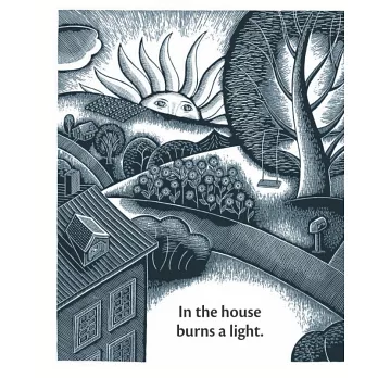 讀者跟著小女孩走到屋子裡,在看夜晚中的房舍、月亮、房子裡透出的光…