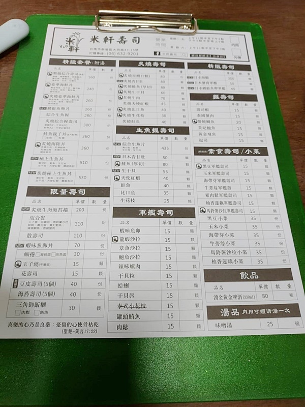 老闆人感覺很nice,如果有訂位的話,可以先將想吃的餐點傳fb私訊到米軒壽司專頁裡,屆時抵達時就不用久候太久。