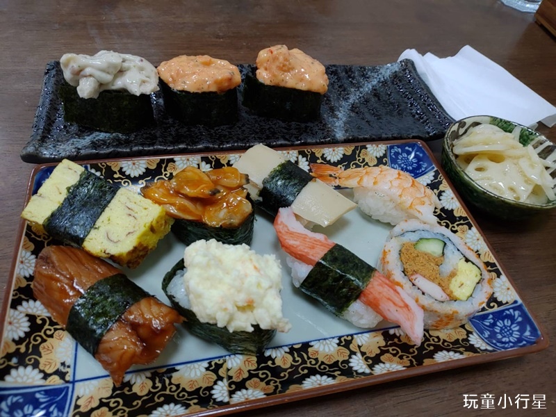 壽司本尊登場,每份壽司的米飯份量頗多,咬起來很紮實。
