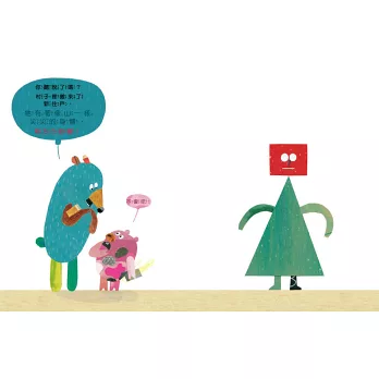 村子裡搬來了新的居民,動物們紛紛在討論這位新居民的外觀。有人說牠頭上長角,有人說牠的體型比一座山還大。