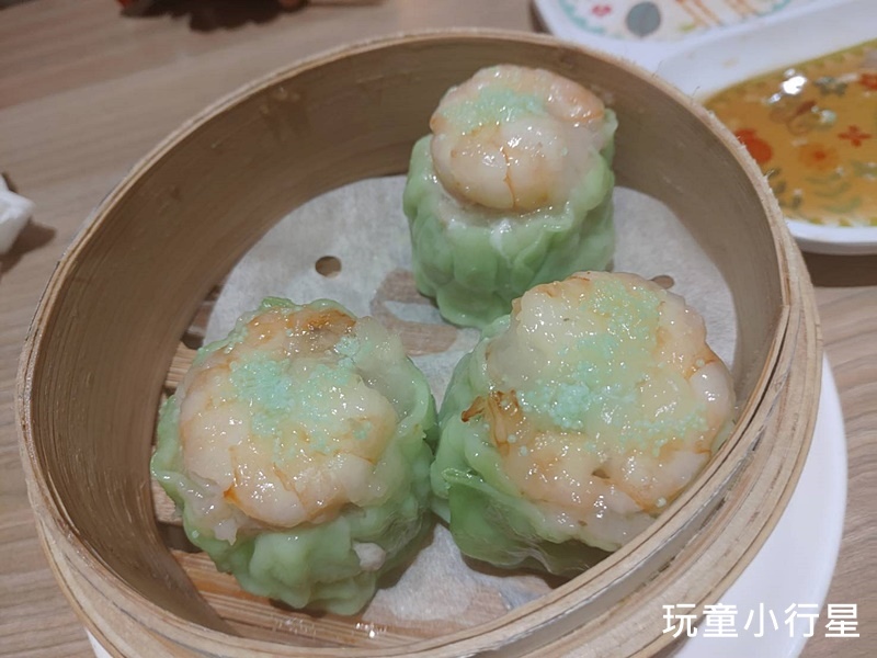 我們這天點了金莎高麗菜、小籠湯包、鮮蝦燒賣、京都排骨、芋頭西米露、烤豬肉(忘了是不是這個菜名,只記得豬肉片是烤的,沾醬再用類似饅頭的扁平麵皮包起來吃)