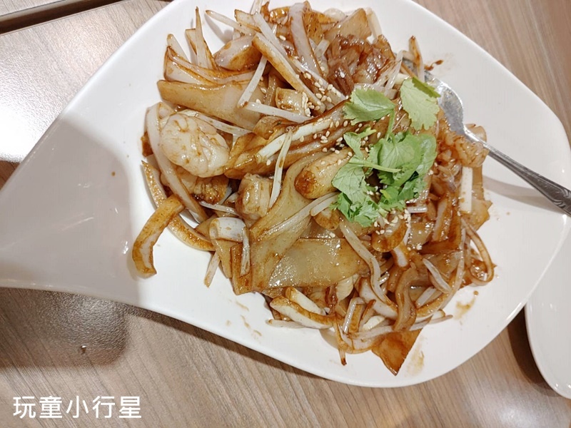 海鮮河粉的洋蔥沒有炒熟,保留了洋蔥本身的嗆辣滋味,兒子怕辣,所以我幫他把洋蔥挑掉了。