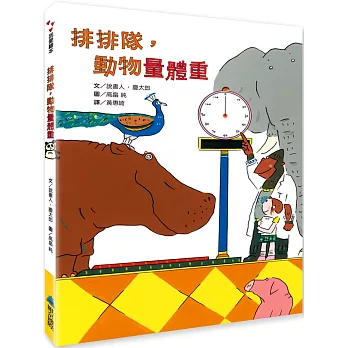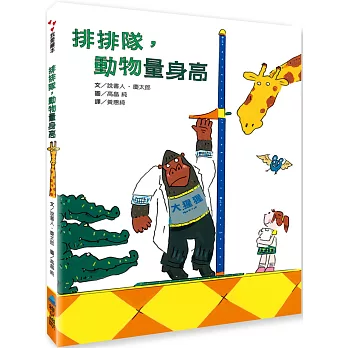 《排排隊,來幫動物量身高》、《排排隊,動物量體重》這本兩本是趣味性十足的量身高、量體重。