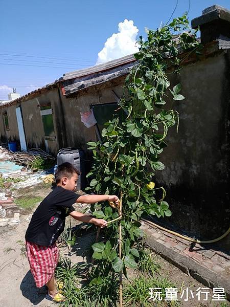 後續米豆越長越茂盛,我也有帶他回阿公家進行採收。