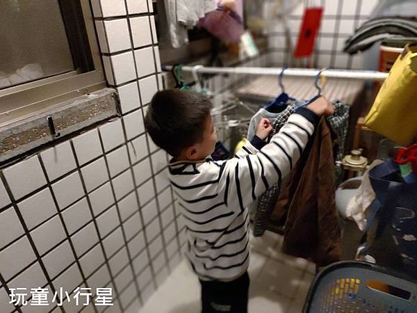 倒是晾衣服,偶爾他心血來潮,不只晾自己的,還會幫晾爸爸的。
