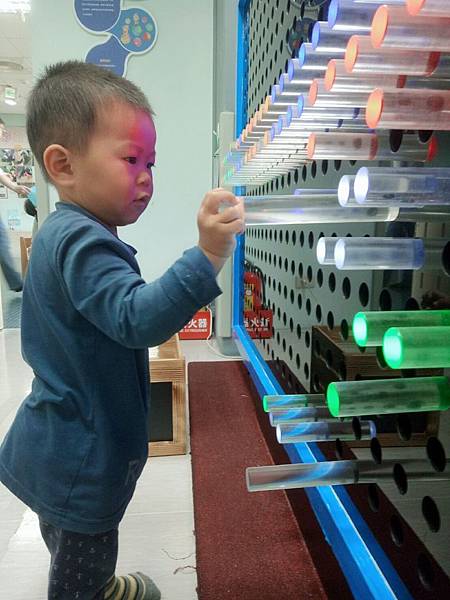 小朋友可以自由拼裝,圓柱還會發亮。