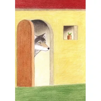我是被封面歪著頭的大野狼吸引的,這隻大野狼看起來不兇猛,模樣可愛。