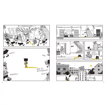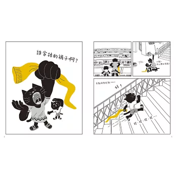 眼尖的小朋友們一打開書就可以在一片黑白裡找到了那隻顯眼的黃色長襪。