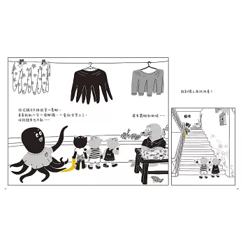 《誰的襪子》是一本以黑白色調為主,尋找襪子主人的可愛謎團故事。