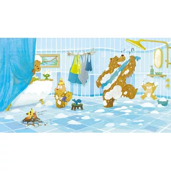 探出頭來發現,這裡大熊的浴室,牠正在洗澡。喔~抱歉抱歉~