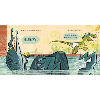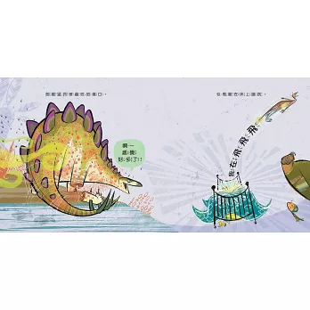 斑比盜龍沒有向左向右看…→結果牠被比牠巨大的恐龍踩死了,交通安全要注意!