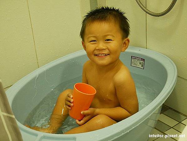 自雞腿寶會站之後我就很少讓他待在澡盆洗澡,這天在貝殼窩有澡盆可以使用讓他覺得很開心!