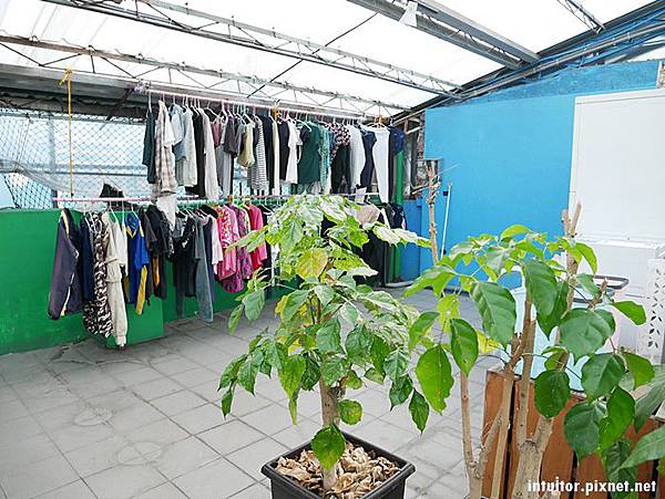 寬敞明亮的頂樓空間有簡易自助廚房、自助洗衣,還能夠眺望、俯視城裡風景。