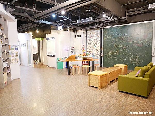 二樓餐廳有兒童餐椅,還有自助廚房能夠享受自煮時光。從貝殼窩出發往大立百貨向方行走,步行約十分鐘的距離就有一處菜市場,購買在地新鮮食材,在貝殼窩內煮上一餐不是件困難的事。交誼空間內有電視、舒適的沙發、可閱讀書籍,還有一把吉它喚起了我高中時期因為追星而學習吉它的往事。