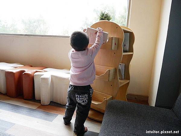 閱讀是好習慣,看完後記得歸位。雞腿寶在沙發上拾起一本小說,很堅持書本要橫著放入書架上。